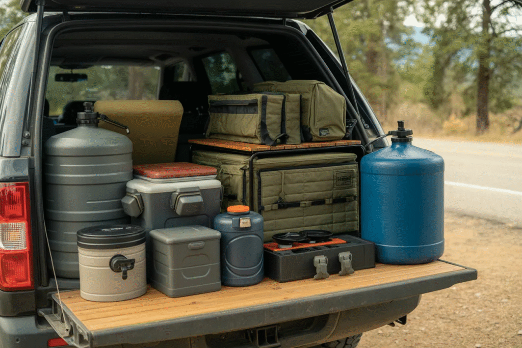 For long road trips, this balance is critical. You need enough gear to stay comfortable and self-sufficient, but not so much that packing becomes a burden. This article walks through what’s visible in the image and explains how each category of gear contributes to efficient, enjoyable car camping over extended travel.